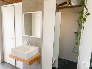 We houden zelf van kamperen en een van de dingen die we belangrijk vinden tijdens onze vakanties zijn de sanitaire voorzieningen. Dit gunnen we onze gasten ook, vandaar dat we het toiletgebouw veel aandacht geven. Aan de dames- en herenkant vind u een wascabine, twee toiletten en een douche. Aan de zijkant een urinoir. Tenslotte is er een grote familiedouche die zowel vanaf de heren als de dameskant te bereiken is. Wel zo handig met de kinderen. Aan de achterkant is plek om uw chemisch toilet te legen en schoon te maken. Ook vind u daar een overdekte fietsenstalling met mogelijkheid om uw accu op te laden en een wasmachine.